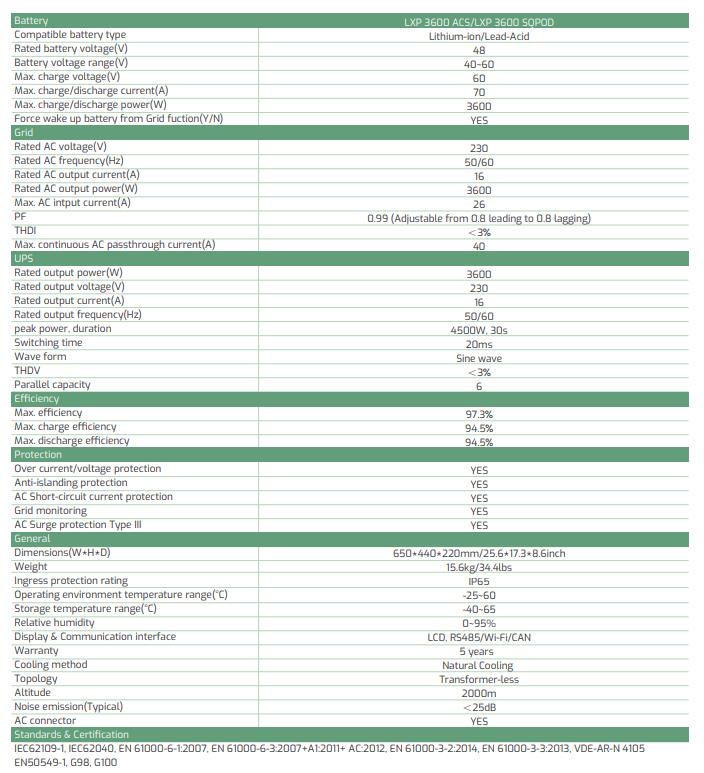 Datasheet Inverter Luxpower ACS 3.6kW (LXP ACS 3600)