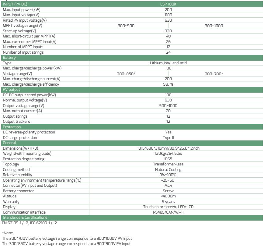 Datasheet Luxpower DC Coupled Solar Storage LSP 100K: